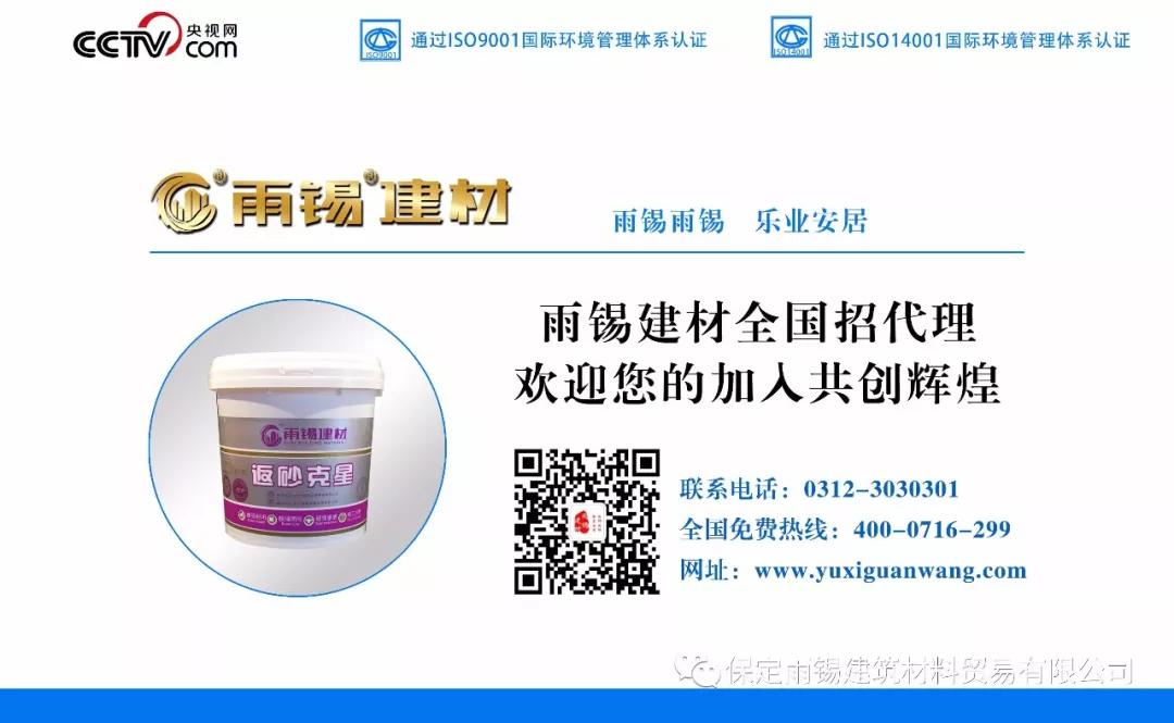 雨錫建材系列產品有雨錫瓷磚粘結劑、雨錫砂漿膠、雨錫抗堿王、雨錫返砂克星、雨錫JS柔性耐水、雨錫固墻寶、雨錫瓷磚修固劑、雨錫固地寶、雨錫T17高彈耐水、雨錫K11柔韌型耐水。
